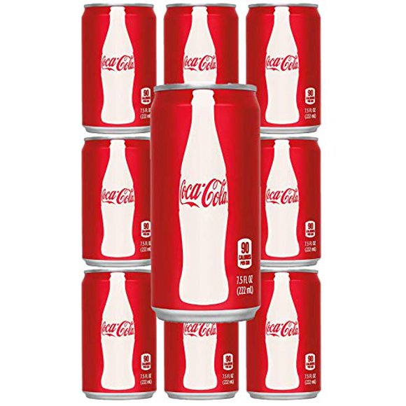 Coca-Cola Original Soda Pop, 7.5 Fl Oz, 10 Pack Cans - Walmart.com Soda Pop / Mini Cans; Coca-Cola Coca-Cola Original Soda Pop, 7.5 Fl Oz, 10 Pack Cans. USD $5.64 (4.6) 4.6 stars out of 8642 reviews 8642 reviews. USD $5.64. ... Love this size of Coke, sometimes I can't drink the full size and end up pouring it out but not with these. Debbie. VS. Most helpful negative review. 1 out of 5 stars review.