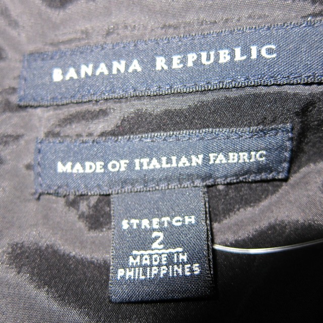 Banana republic labels. Returns & Exchanges | Banana Republic To begin your return and create a prepaid UPS or prepaid Canada Post return shipping label, use the interactive returns process. 2. Prepare your package a) Pack your return securely, and include your packing slip (generated via the interactive returns process). Use original packaging if possible. Vintage Tag History: Levi's, Banana Republic, Betsey Johnson, The founders referred to Banana Republic for "vintage vacationers," using '40s aesthetics for design aesthetics. NOTABLE TAG CHANGES: In the late '80s, bananas WERE used in the Banana Republic label! This key difference, plus the removal of "Safari clothing" from tags, differentiate present day tags with those which are at least 20 years plus. Banana Republic Vs Banana Republic Factory - Dapper Clan banana republic vs banana republic factory. March 3, 2022 by Dylan Baker. Banana republic is one of the brands in the gap umbrella and it is known for providing good quality fashion-forward clothing. It is one of the most popular brands among men for shopping basics and it is loved by the fashion enthusiasts because of its stylish designs. Banana Republic Coupons | 15% Off In August 2022 | Forbes Banana Republic promo code 40% off. 40% Off. Expired. Online Coupon. Banana Republic free shipping code. Free Shipping. Expired. Online Coupon. 20% off Banana Republic Rewards code.
