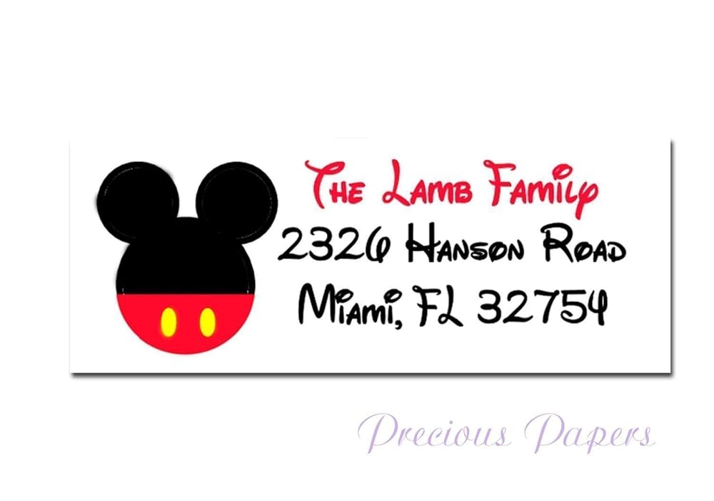 Mickey Mouse Address Labels | Checks Unlimited Add color and fun to your mail with Vintage Mickey Mouse return address labels. Available in sets of 200 self-sticking labels; size 2 5/8" x 5/8". Business or organizational use of this product is prohibited. ... Disney Vintage Mickey & Minnie Checkbook Cover. $18.95 $18.95. X. Check Register. $2.50 $2.50. X. Black Leather Debit Organizer. $12. ...