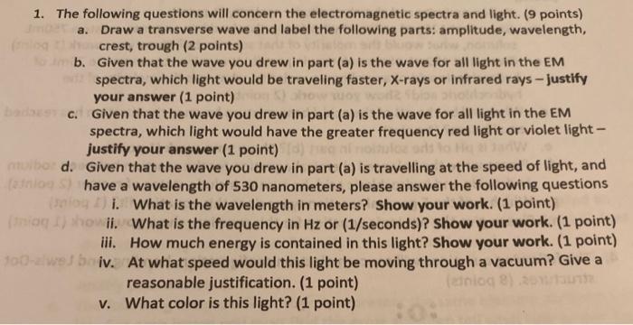 unit 4 practice.docx - a. Draw a transverse wave and label the ... Then draw a longitudinal wave and label the following properties: compression, rarefaction, and wavelength. (3 points) b. What is the equation for the speed of a wave? Identify each variable. (1 point) v = fλ v = wave speed f = frequency λ = wavelength v = fλ v = wave speed f = frequency λ = wavelength