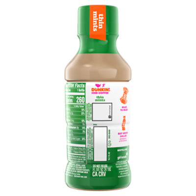 Dunkin Donuts Thin Mints Iced Coffee Beverage - Target Enjoy the rich, smooth flavor of Dunkin' Iced Coffee combined with the chocolatey and minty taste inspired by the Girl Scout Thin Mints cookie. Make sure to sip this iced coffee cold to maximize its delicious potential. Grab a bottle today for that tasty boost you need to keep on running.