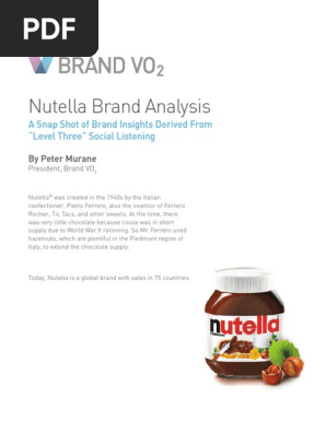Nutella 4 Page - Scribd Nutella is a hazelnut spread with skim milk and Cocoa. Mr. Pietro Ferrero, a pastry maker and founder of the Ferrero Company, created this healthy, hazelnut spread in the 1940s. At the time of creation, chocolate was scarce because cocoa was in short supply due to WW II rationing.