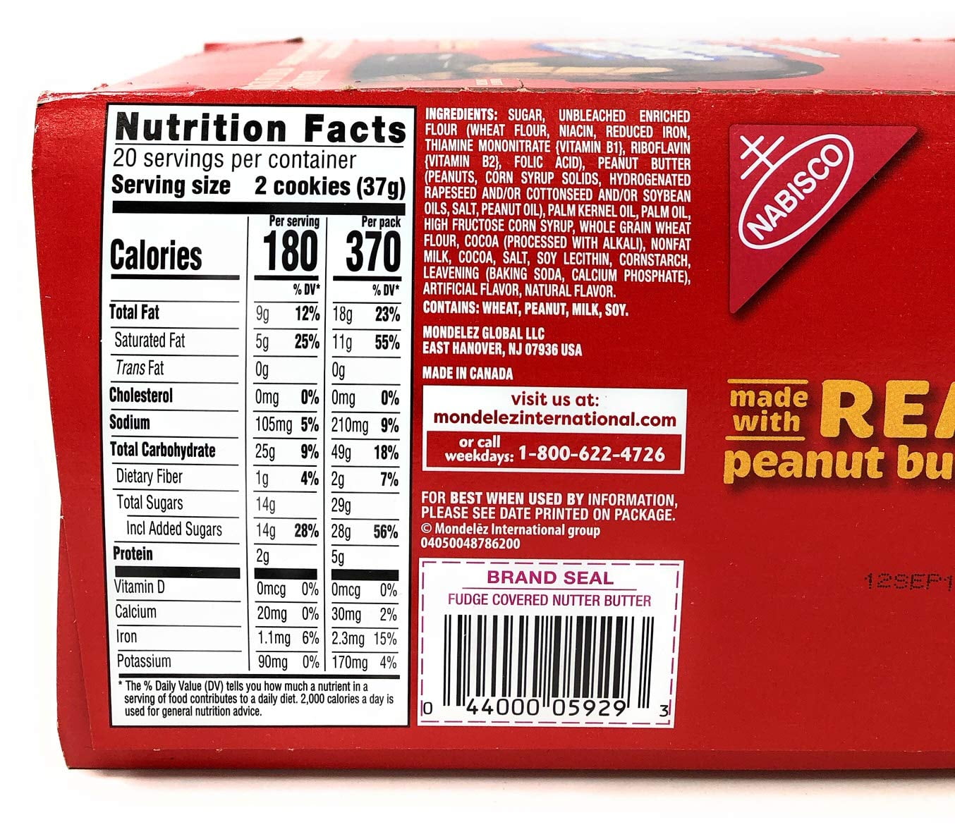 Nabisco Nutter Butter Peanut Butter Sandwich Cookies Family Size Nabisco Nutter Butter Peanut Butter Sandwich Cookies Family Size. 16 oz. $4.41 ($0.28/oz) Product description. The peanut butter lovers' cookie. Made with real peanut butter. Ingredients Unbleached Enriched Flour (Wheat Flour, Niacin, Reduced Iron, Thiamine Mononitrate {Vitamin B1}, Riboflavin {Vitamin B2}, Folic Acid), Sugar, Peanut Butter (Peanuts, Corn Syrup Solids, Hydrogenated Vegetable Oil {Rapeseed, Cottonseed, and Soybean Oil}, Salt, Peanut Oil), Canola Oil, Whole Grain Wheat Flour ...