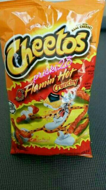 CHEETOS® Crunchy FLAMIN' HOT® Cheese Flavored Snacks | Cheetos Description Hot, spicy flavor packed into crunchy, cheesy snacks. CHEETOS ® Crunchy FLAMIN' HOT ® Cheese Flavored Snacks are full of flavor and made with real cheese. Nutrition Facts Ingredients Buy Now Buy Now CHEETOS® Crunchy FLAMIN' HOT® Cheese Flavored Snacks (opens a popup) Product Reviews ★★★★★ ★★★★★ 4.2 5 Reviews