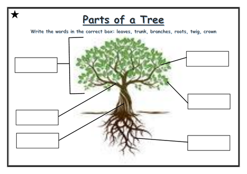 Label the parts of a tree | Teaching Resources - Tes For children in Year 1 to identify and name the parts of a tree. One sheet has boxes pointing to the different parts of the tree and the ...