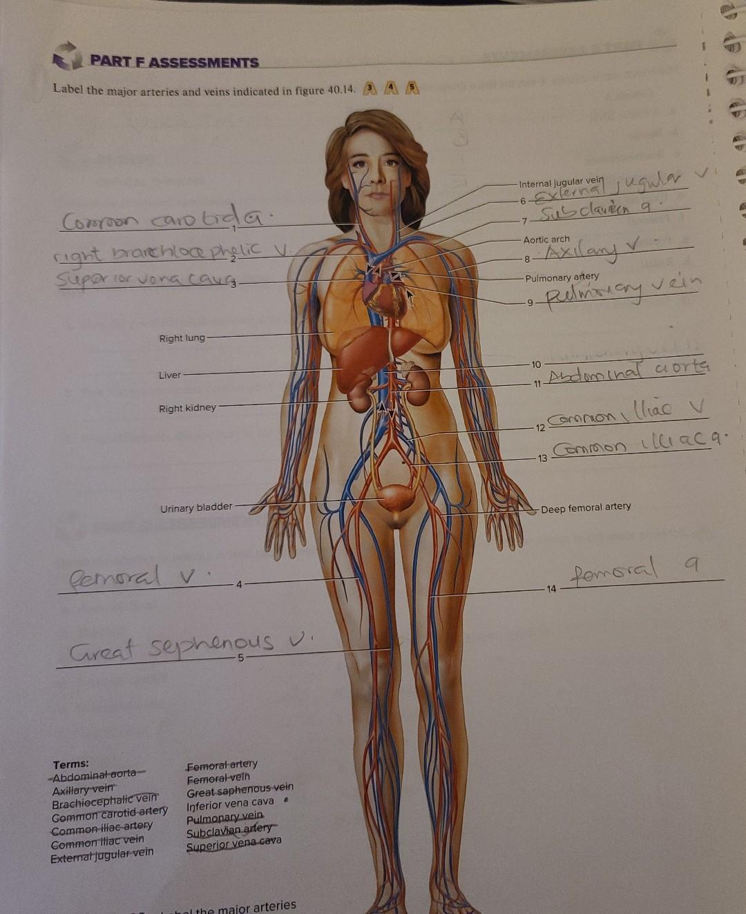 Solved PART G ASSESSMENTS Label the major arteries and veins ...