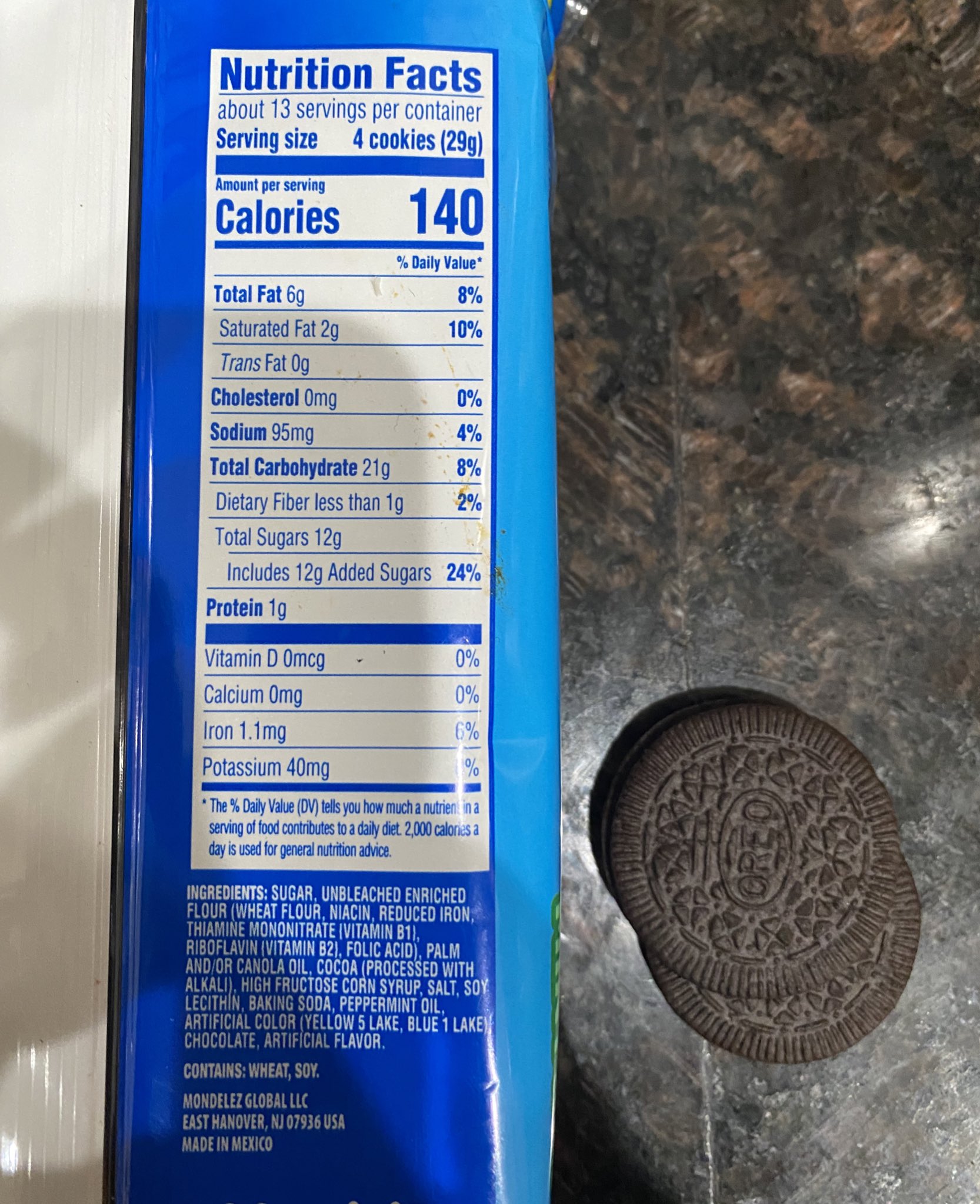 Food label of oreos