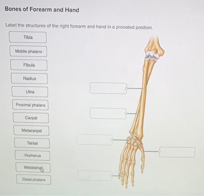 Solved Right Hand - Major Bones Label the structures of the - Chegg Right Hand - Major Bones Label the structures of the right hand seen in the anterior view. Tarsals Uina Carpals Phalanges II IN Metacarpals Metatarsals Fibula Radius Tibia Zoom Reset Question: Right Hand - Major Bones Label the structures of the right hand seen in the anterior view.