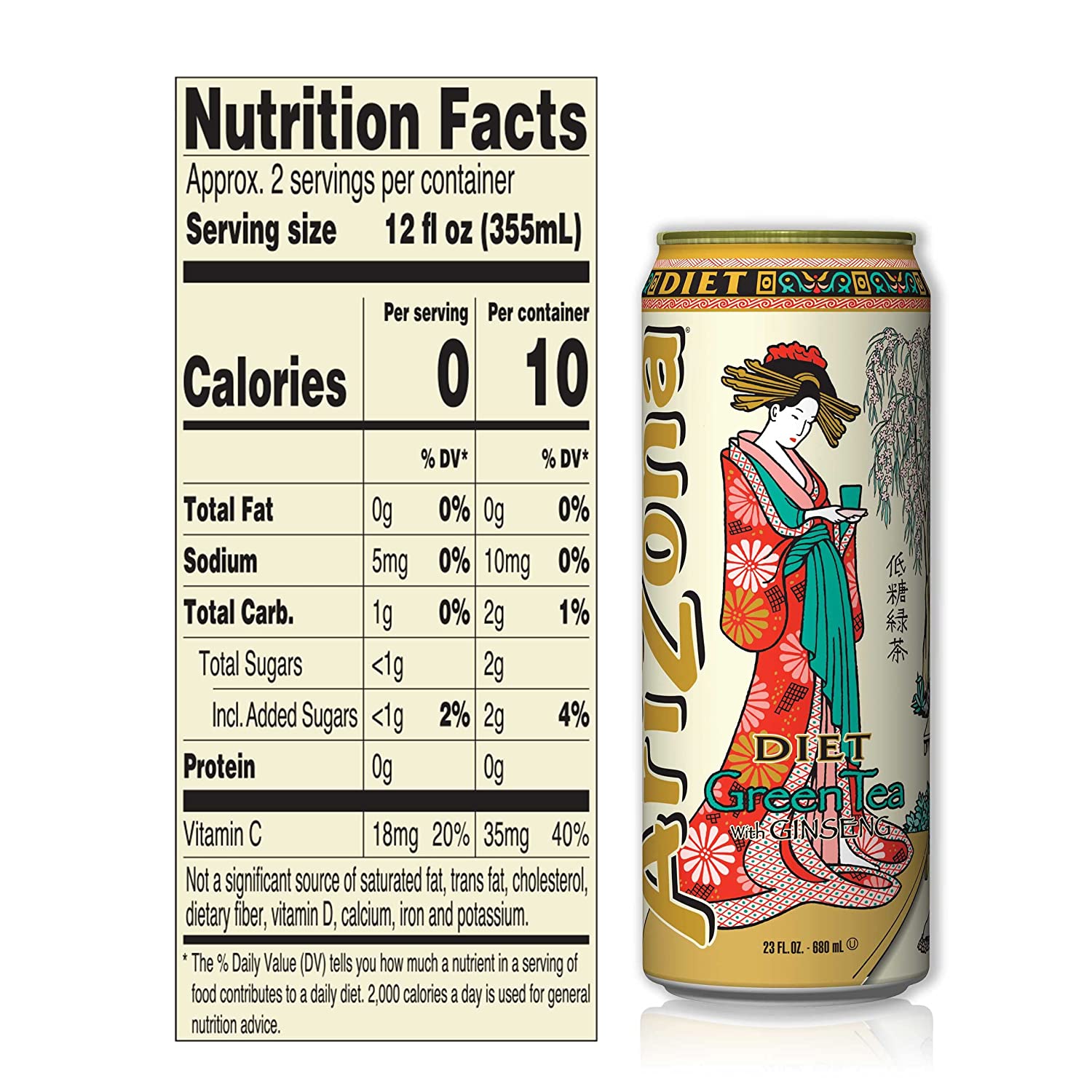 Arizona Diet Green Tea With Ginseng - 128 Fl Oz Jug : Target Description. Vitamin C antioxidant. Enjoy America's best selling ready-to-drink green tea. Arizona Green Tea, where great taste and goodness naturally come together. Green tea for its health benefits, ginseng for energy and nature's natural sweetener, honey. Enjoy over iced or served up hot but without the calories. Shake well.