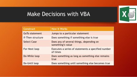 VBA IF Statement - A Complete Guide - Excel Macro Mastery The following code shows a simple example of using the VBA If statement. If Sheet1.Range("A1").Value > 5 Then Debug.Print "Value is greater than five." ElseIf Sheet1.Range("A1").Value 5 Then Debug.Print "value is less than five." Else Debug.Print "value is equal to five." End If. The Webinar. Members of the Webinar Archives can access the webinar for this article by clicking on the image below.
