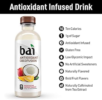 Bai Antioxidant Infusion Antioxidant Beverage, Panama Peach FILTERED WATER, ERYTHRITOL, PEACH JUICE CONCENTRATE, CITRIC ACID, FRUIT AND VEGETABLE JUICE CONCENTRATE (FOR COLOR), TEA EXTRACT, ASCORBIC ACID (VITAMIN C), ... Bai Drink Nutrition Facts - Cully's Kitchen Feb 14, 2022 ... Bai has 1 gram of sugar and ten calories per bottle and is vitamin C and antioxidant-infused, exotic-flavored, infused with little-known coffee ... Antioxidant water by Bai Brands LLC - Nutritional Value Minerals · Sodium, 0.00 mg ; Proteins and Aminoacids · Protein, 0.00 g ; Carbohydrates · Net carbs, 0 g ; Fats and Fatty Acids · Fat, 0.000 g ...