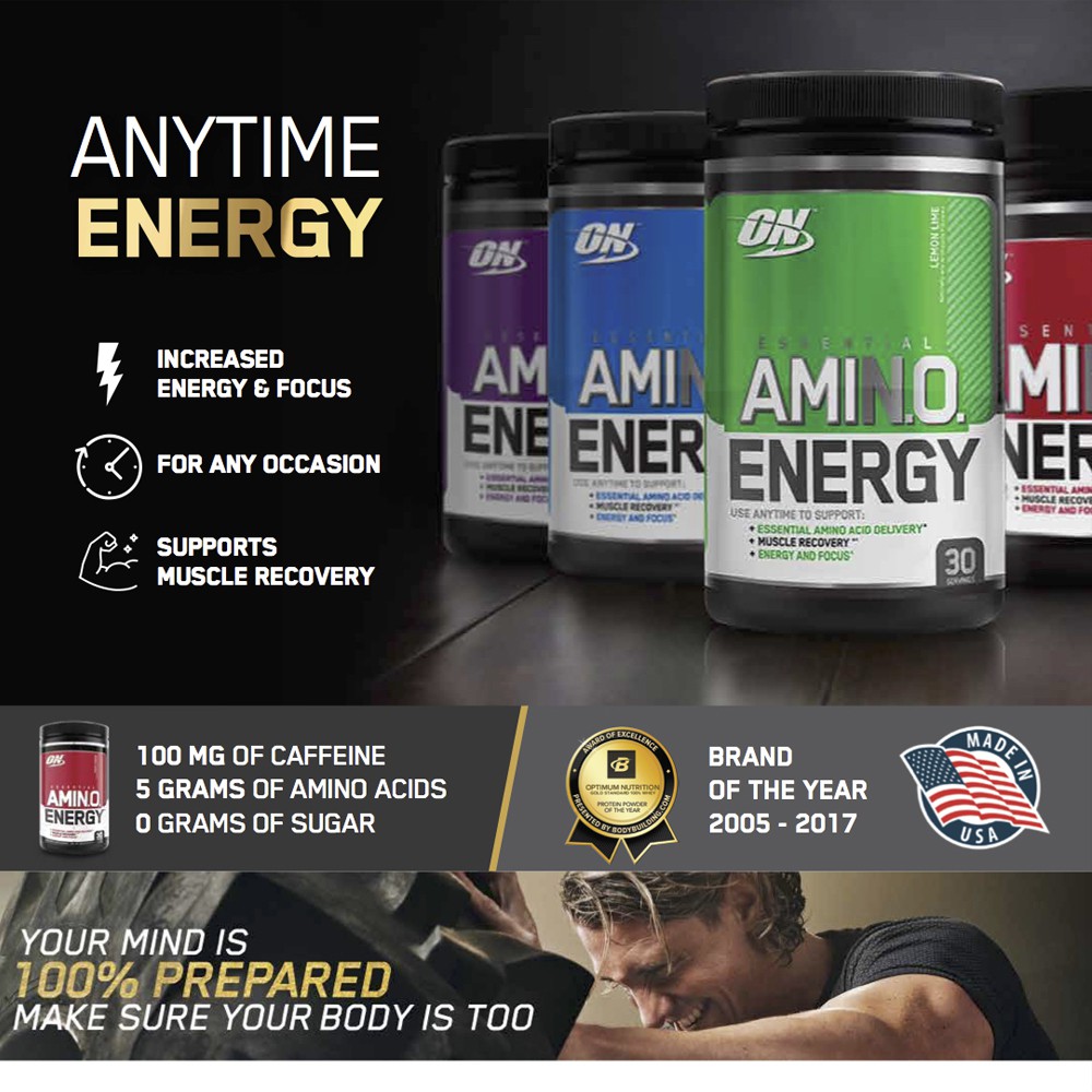 energydrinkhub.com › is-optimum-nutrition-essential-amino-energy-bad-for-youIs Optimum Nutrition Essential Amino Energy Bad For You?... Aug 2, 2021 · A single 12 fl. oz can of Amino Energy contains 100mg of caffeine, 0g sugar, and 5 calories only. In consideration of caffeine content, it’s way below the recommended caffeine intake by the FDA. The drink also has no added sugar so that you’ll be free from side effects like: Weight gain Inflammation Nausea Tooth Decay, etc.