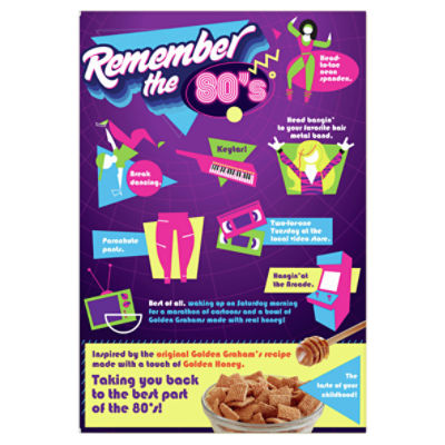 Golden Grahams Graham Cracker Taste Breakfast Cereal Start your morning with the sweet, graham cracker taste of Golden Grahams cereal. Made with a touch of real honey for an irresistible graham cracker flavor your family will love; it's a quick and easy breakfast idea for kids. Not only does Golden Grahams taste amazing, but it's also a healthy breakfast option you can keep on-hand in your pantry.