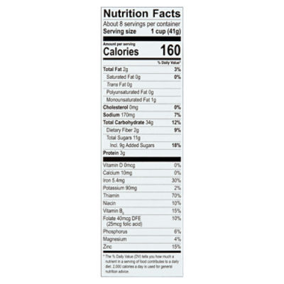 Post Honey Bunches of Oats Cereal with Almonds Family Size - H-E-B Nutrition Facts · Amount Per Serving. Calories. 170 · % Daily Value · Total Fat. 3g; 4% · Saturated Fat. 0g; 0% · Trans Fat. 0g · Polyunsaturated Fat. 0.5g.